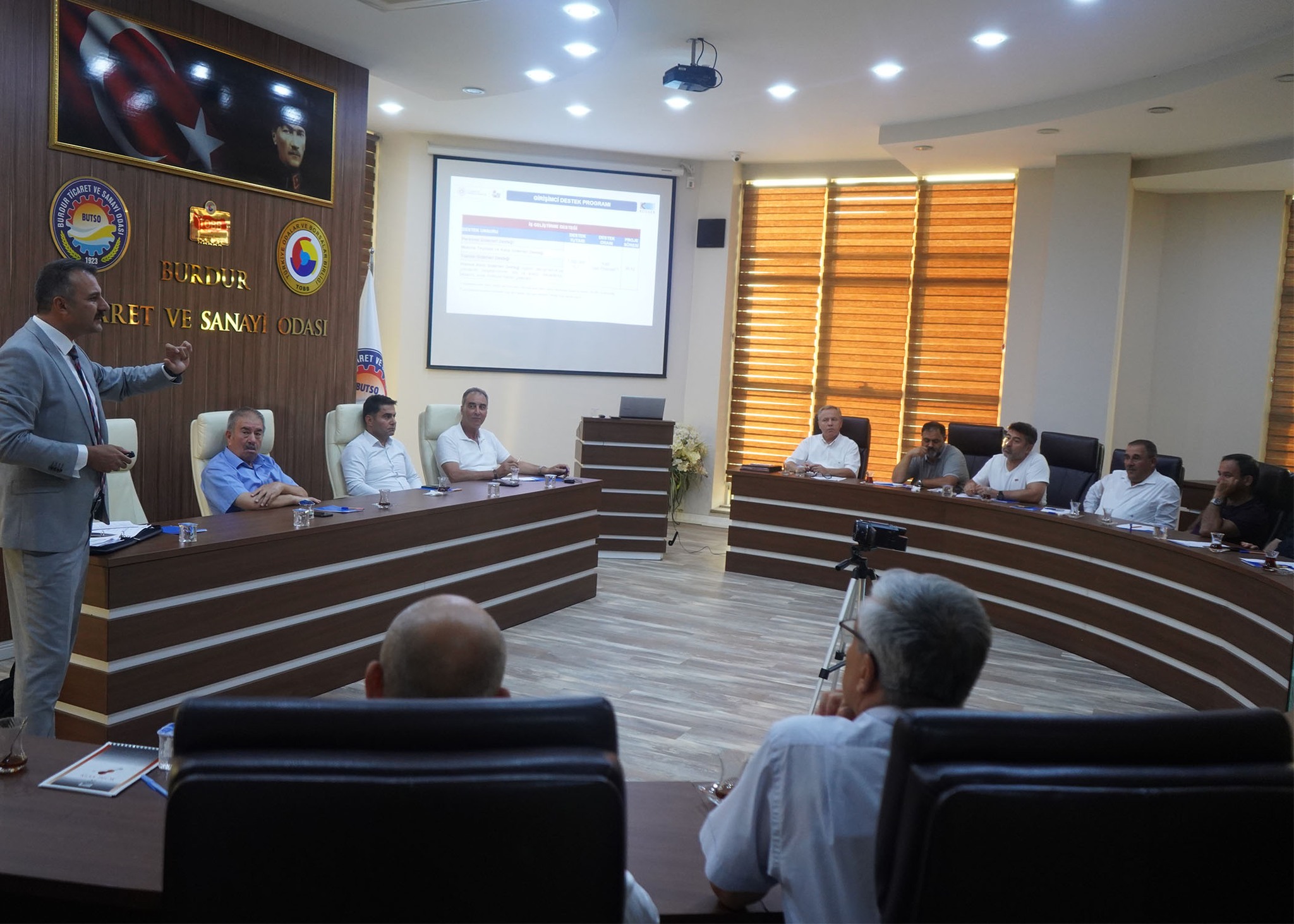 Küçük ve Orta Ölçekli İşletmeleri Geliştirme ve Destekleme İdaresi Başkanlığı (KOSGEB) Burdur İl Müdürü Davut Tolga UĞUR, cuma günü gerçekleştirdiğimiz Meclis Toplantımıza katılarak; kurumumun projeleri, yatırımları ve desteklemeleri ve bununla birlikte Burdur iş dünyasının KOSGEB'ten faydalanması hakkında güncelleme ve bilgilendirmede bulundu.