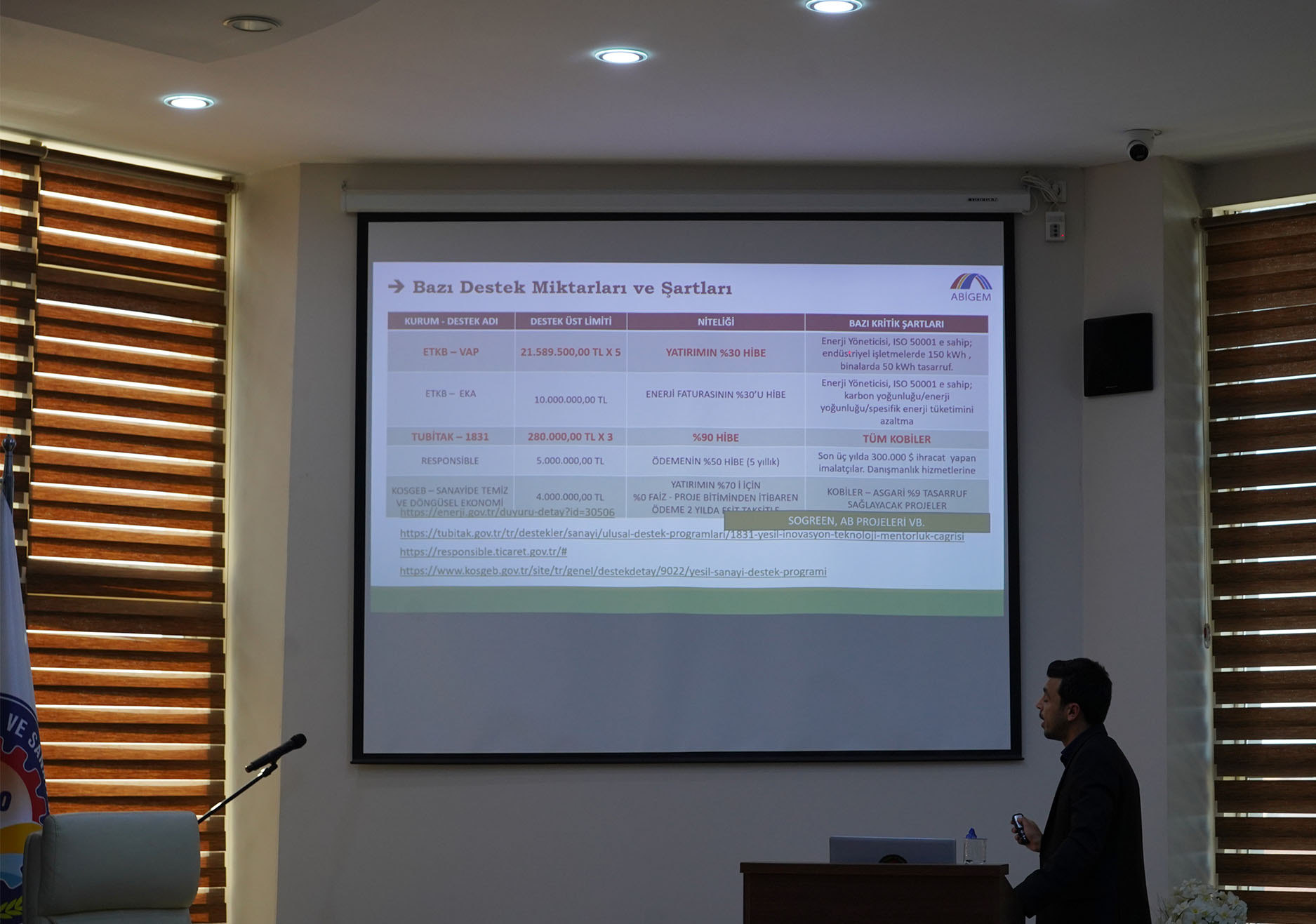 Toplantıda ABİGEM (Avrupa Birliği Türkiye İş Geliştirme Merkezleri) ve Afyonkarahisar Ticaret ve Sanayi Odası Yetkilileri katılımcıları enerji verimliliği ve bu kapsamdaki mevzuatlar hakkında bilgilendirdi.